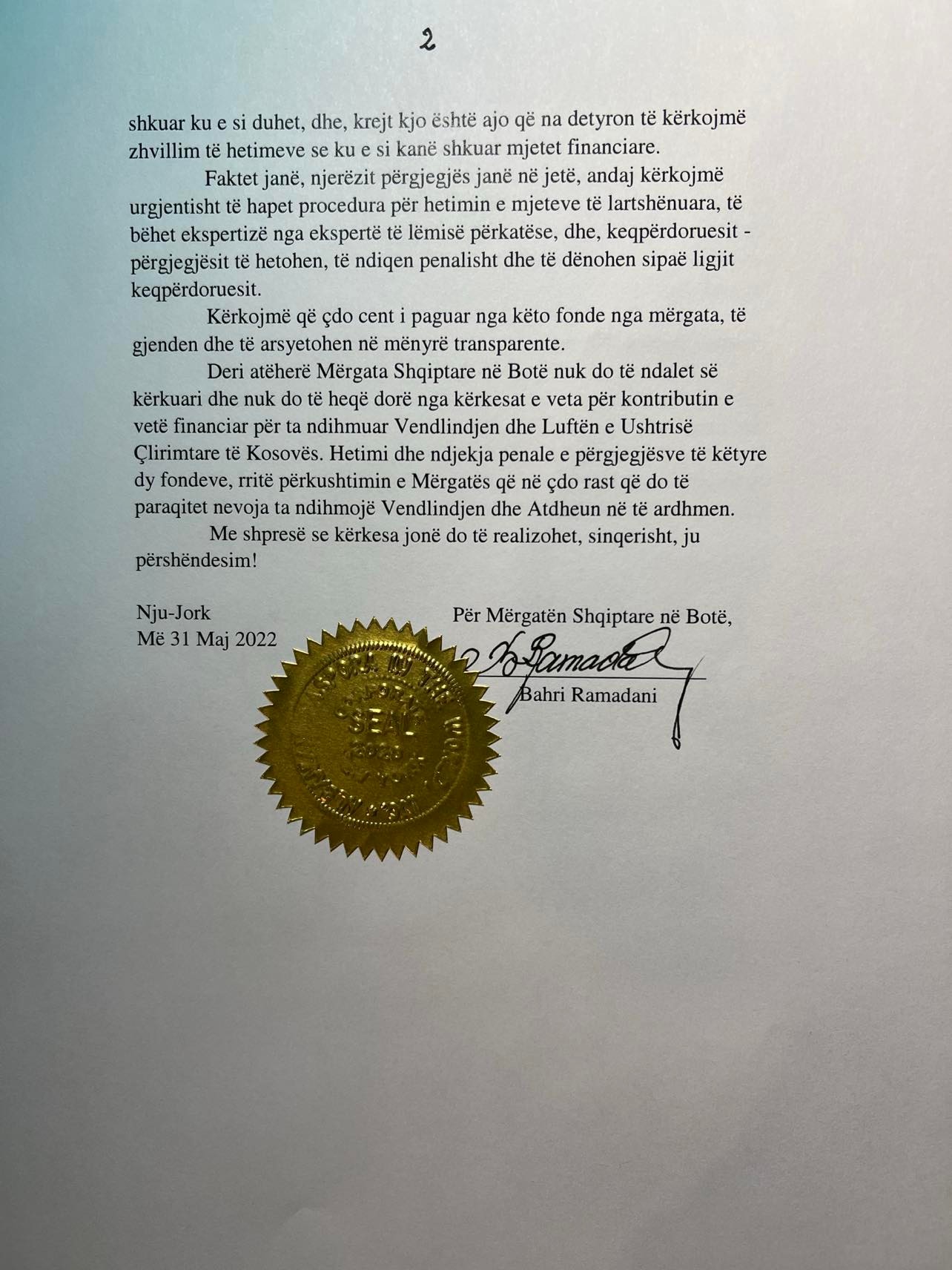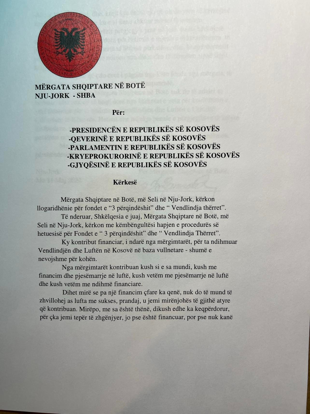 Until then, the Albanian Diaspora in the World will not stop looking for and will not give up its requests for its financial contribution in aid of the Homeland and the War of the Kosovo Liberation Army. The investigation and prosecution of those responsible for these two funds increases the commitment of the diaspora in any case when the need arises to help the Homeland and the Our Country in the future.